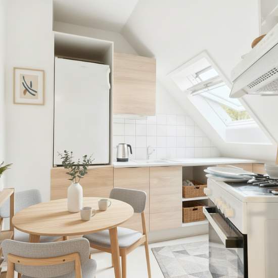 Træd ind i en charmerende og funktionel 2-værelses lejlighed på 50 m2, der med sin hverdagsvenlige planløsning og lyse atmosfære er klar til at skabe en hyggelig base for dig. Lejligheden byder på charmerende detaljer som lyse gulve og skråvægge, god belysning fra tagvinduer samt en central beliggenhed, der gør hverdagen og transporten let. Du bydes velkommen i en entré med plads til overtøj. Herfra er der adgang til: Stuen er lys og indbydende takket være et stort vindue, og her er rigelig plads til både sofa- og spiseafsnit. Soveværelse...