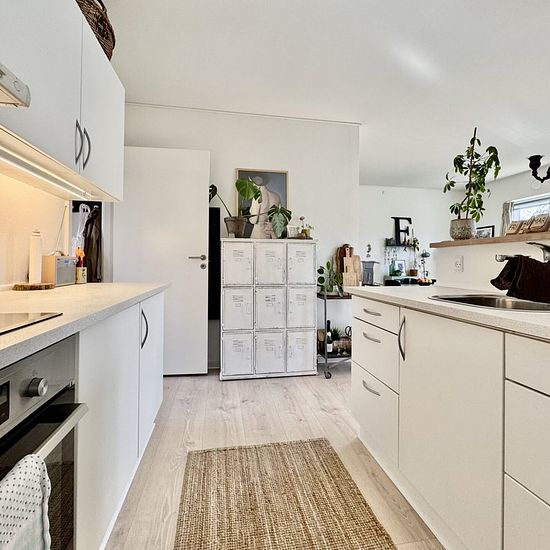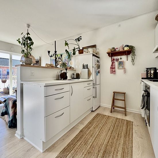 It's the perfect place for you who want peace and quiet! A lovely cozy apartment with room to live and breathe. There is direct access to your own balcony and, of course, free parking. You get it all – a proper kitchen with space, a good bedroom with wardrobes, and a great bathroom with a nice shower stall. The apartment is located in a green and quiet area, which means you can find peace and quiet away from Aarhus' bustling city life – and best of all, free parking! Close to public transport and shopping (Rema1000 and Lagkagehuset). The...