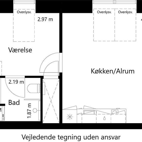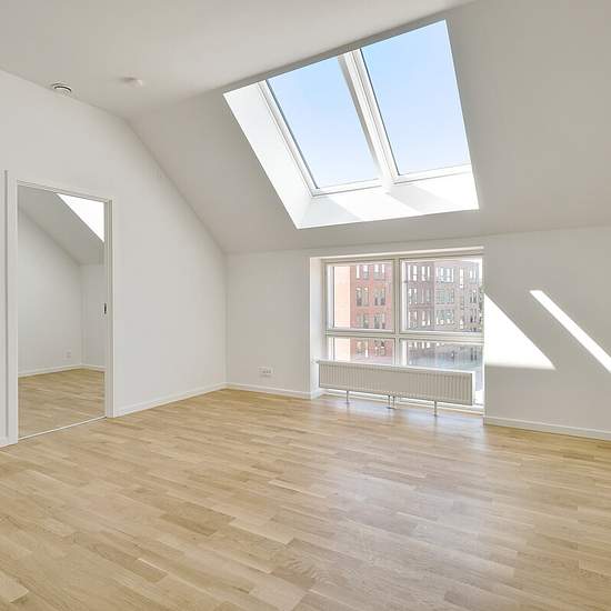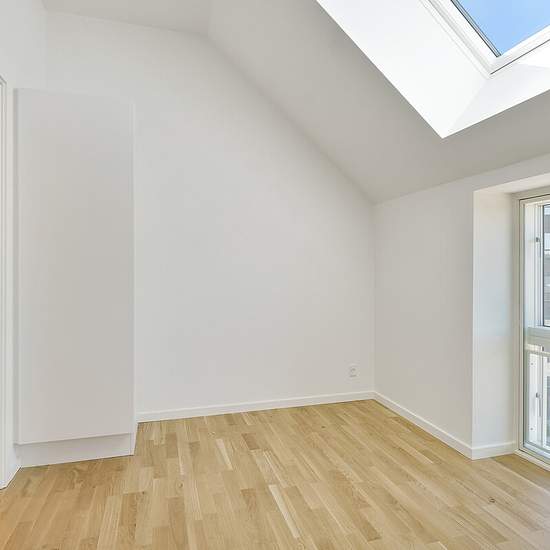 Lovely and bright 2-room apartment The apartment is located on the top floor and has skylights that provide a bright and pleasant indoor climate. The home consists of an open-plan kitchen-living area and a bedroom with white cupboards. The kitchen is modern and equipped with a dishwasher, fridge-freezer, ceramic hob, oven and extractor hood. The bathroom is modern and contains a shower cubicle and a washing machine. There is a storage room associated with the apartment. It is possible to rent a parking space in the underground parking garag...