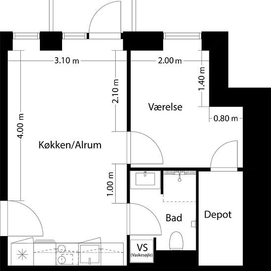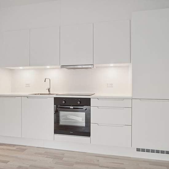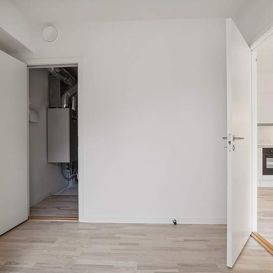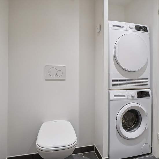Beautiful and bright apartment with balcony This lovely 2-room apartment offers a bright and spacious kitchen-living area, a bedroom and a nice balcony. The kitchen is modern and equipped with a fridge/freezer, hob unit, extractor hood, built-in oven and dishwasher. The bathroom is also attractive and modern and fitted with both a washing machine and a tumble dryer. There is a storage room in the apartment. The building has a large common room with an adjoining kitchen and two toilets, which can be rented for private events. On the 5th floo...