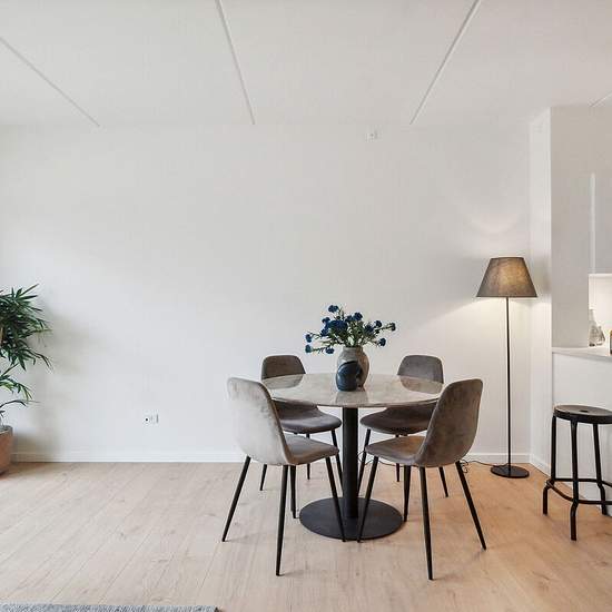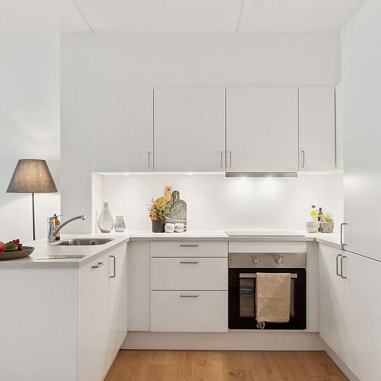 At Rosenkildehaven in Slagelse we offer both senior apartments and apartments for everyone. The homes feature a large kitchen-dining area open to the living room, from which you have access to a terrace or balcony. The bathroom is spacious with a shower area and a bathroom cabinet with mirror. Depending on the apartment size, you will have one or two separate rooms. All units have a storage room within the apartment. There is underfloor heating in all rooms. Appliances The homes come with all major appliances including a washing machine, tu...