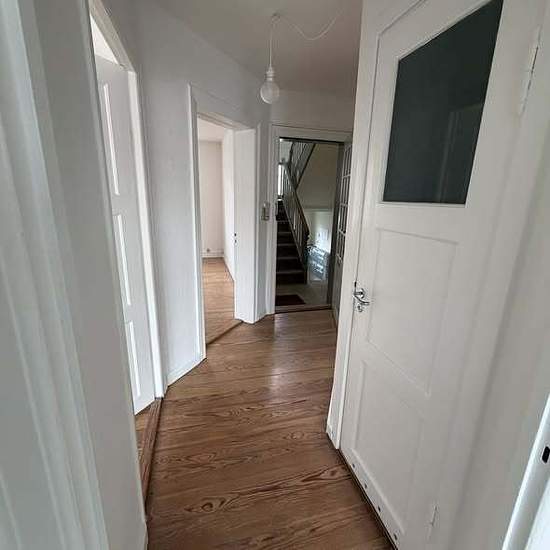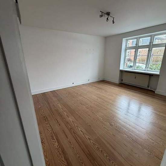 Ahlmannsvej 50, ground floor left. Apartment of 64 m² located on Ahlmannsvej, centrally in Sønderborg. Available from 1 March 2026. Entrance hall with access to the living room, kitchen, toilet with shower and bedroom. Small balcony with space for 2 people. Newer kitchen with stove, extractor hood, fridge-freezer, cupboards etc., and access to the balcony. Space for a small dining table in the kitchen. Large bedroom. The apartment is bright with large windows. Walls will be freshly painted (white) at handover. The ground floor is half a...