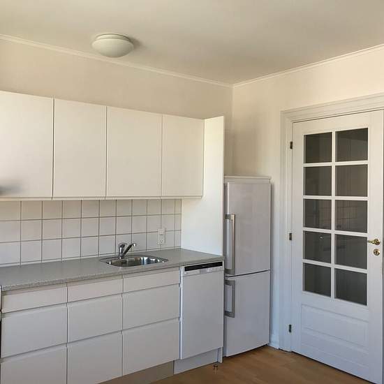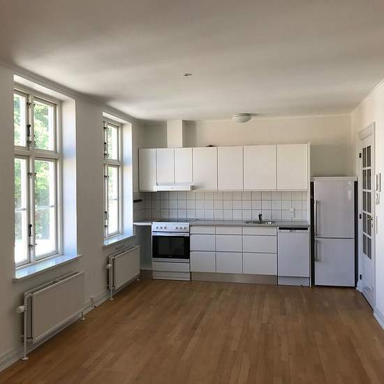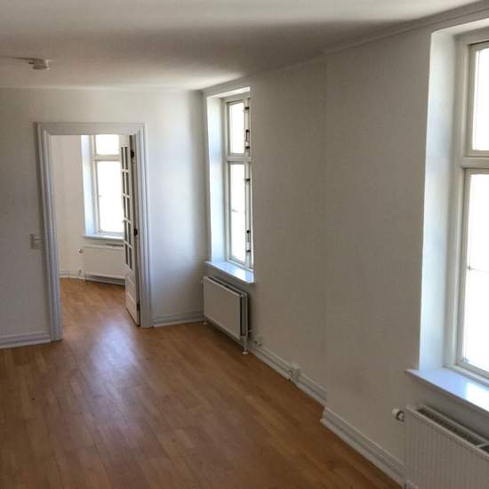 Luminous and inviting apartment in the heart of Sæby – Algade Well-laid-out, bright apartment on the 1st floor of a well-maintained building on Algade. Here you can live close to the harbor, the town center and Sæbygård Forest. The apartment offers an entrance hall with good closet storage as well as a lovely large open-plan kitchen/dining area with a modern kitchen. The floors are solid oak parquet. The bedroom is spacious and has closet space. The bathroom has a shower screen. A private washer/dryer is included. Private storage room in...