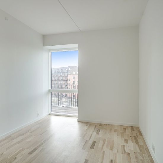 Modern and stylish apartment centrally located in Valby In the heart of Valby, you will find this newly built property, which houses a lovely apartment. Here you can look forward to an optimal floor plan and delicious material choices, and this number of rooms makes the home ideal for both couples and small families. The sharp property is constructed with a brick facade and metal panels on the top floor, which adds a raw edge to the building. Outside, you notice the abundant window sections and balconies that break the monotony of the faca...