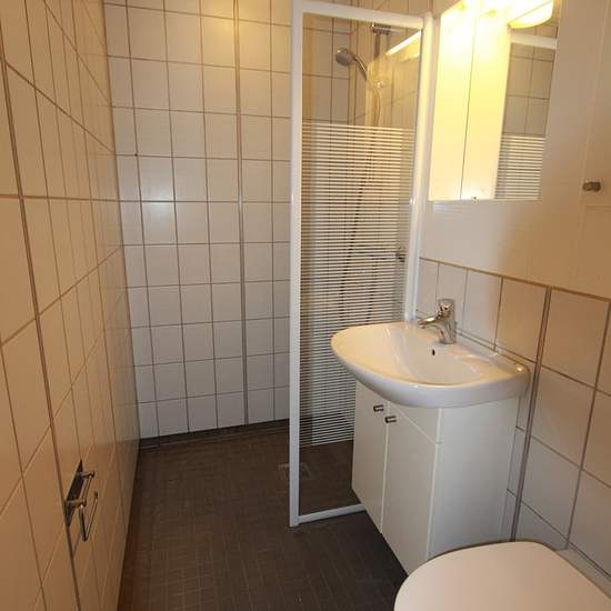 The apartment is bright, with newer laminate flooring in the living room and bedroom. Bright kitchen with beech kitchen units as well as a small dining area, dishwasher and ceramic stove. The bathroom has white tiles on the walls and gray tiles on the floor, as well as a glass partition to the shower area. The property, which was built in 1920 and has been continuously modernized, is located in Vejle Vestby near the center. The property is part of a residential block consisting of 143 apartments. In the basement there is a shared laundry ro...