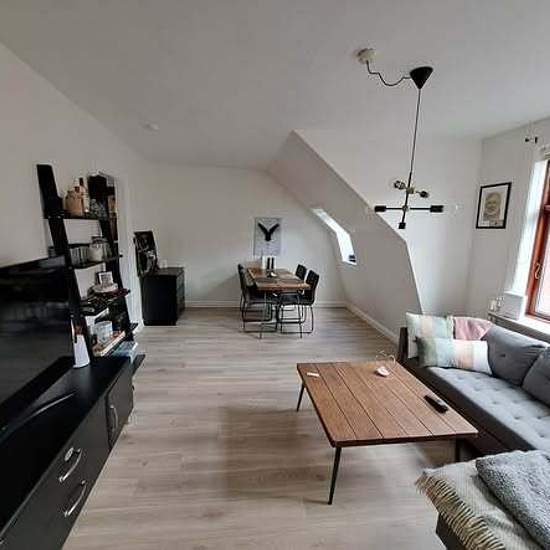 Lovely 2-room apartment in central Vejle of 60 m2 with a good layout. Kitchen from 2020 with white handleless units, dishwasher and large fridge/freezer. The bathroom is from 2001 with a separate shower corner on one side of the bathroom. Layout: New bright kitchen-living area from 2020 and a large living room as well as a bedroom with a large floor-to-ceiling wardrobe. The kitchen-living area, living room and bedroom all have light wooden parquet floors from 2020. From the kitchen-living area there is access to the bathroom and the living...