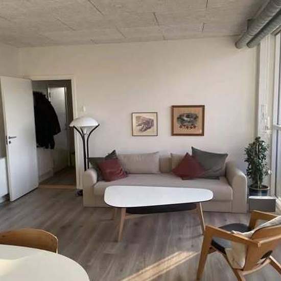 Beautiful bright 2-room apartment of 86 m² with balcony. The apartment is located on the 2nd floor of a quiet building on Staldgaardsgade and is set back from the street, so you do not hear noise from the street or from the city centre at all. At the same time, the apartment is very centrally located in Vejle, a 2-minute walk to the pedestrian street and everything Vejle city centre has to offer. The apartment consists of a large, bright bedroom with space for a small office. The bathroom is also nice and spacious, with a shower, toilet a...