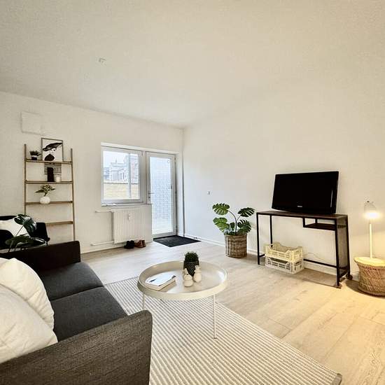 Live in the city center within walking distance of the pedestrian shopping street, shopping, the train station, the concert hall, student life, etc. A small nice two-room apartment on the ground floor, right in the heart of Vejle. The apartment contains a lovely large open-plan room with space for a living area, dining area and a nice kitchen with appliances. A bedroom with built-in closets and a bathroom with the possibility to install your own washing machine. Livestock and pets are not allowed. An advance (a/c) charge for water and h...