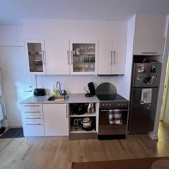 Welcome to this lovely 2-room apartment! Highlights of the rental unit: - Private outdoor area adjacent to the shared courtyard environment - Built-in closet in the bedroom - Central location - Private storage room in the shed When you enter the rental unit, you are greeted by the nice kitchen-living room. In the kitchen, there is a refrigerator/freezer, stove, and extractor hood installed. From here, you can access both the bathroom and bedroom. The bathroom has underfloor heating and space for a washing machine/dryer. The bedroom ...