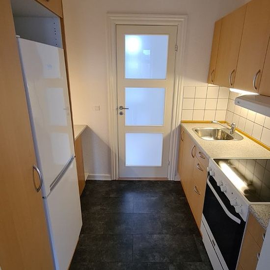 Cozy 2-room apartment with parking Charming 2-room apartment with lime-treated plank floors in the living room and bedroom. Kitchen with good cabinet space in light beech kitchen furnishings. Entrance hall with good cabinet space. Bathroom with underfloor heating and white tiles. Pets not allowed. The building, which was constructed in 1918 and continuously modernized, is located in the center and close to the train station. The property consists of 33 apartments. In the basement, there is a shared laundry and drying room. Each apartment al...