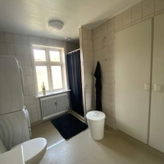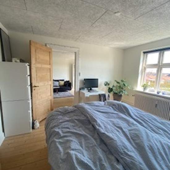 Nice standard 2-room apartment located at Koldingvej 100, 1st floor. Entrance with stairs up to the 1st floor, kitchen with fridge-freezer, stove, extractor hood and dishwasher. Cozy living room, bedroom with access to a bathroom with plenty of cupboard space.