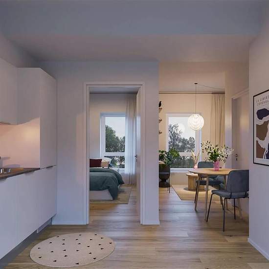 Optimally utilized 1–4 room apartments A total of 202 bright and attractive homes have been built in Byhaven VEA, including 138 apartments and 64 youth residences. The apartments offer various layouts in sizes from 51–97 m2. The rental homes are therefore attractive for students, couples, families with children and seniors, and there is an adjoining common room that can be used for both social and private events. All apartments are finished in light, quality materials with a simple and sleek look and are centered around an inviting kitchen...
