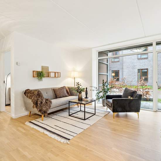 OBS! Billederne er fra en anden type bolig. Se derfor plantegning.Ejendommen. Det smukke Klippingshusene blev opført i 2020, og består af i alt 9 blokke med 144 lejligheder i alt. Lejlighederne ligger i stuen, på 1. sal eller 2. sal, og har alle unikke altaner eller en smuk flisebelagt terrasse. Indvendigt i den nyopførte ejendom findes der forskellige planløsninger som spreder sig fra 69-100 m2, og du kan derfor vælge mellem en lejelejlighed med 2, 3 eller 4 værelser.Boligerne. I Klippingshusene kan du flytte direkte ind i en nybygget lejeb...