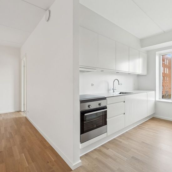 Ejendommen! Det smukke Klippingshusene blev opført i 2020, og består af i alt 9 blokke med 144 lejligheder i alt. Lejlighederne ligger i stuen, på 1. sal eller 2. sal, og har alle unikke altaner eller en smuk flisebelagt terrasse. Indvendigt i den nyopførte ejendom findes der forskellige planløsninger som spreder sig fra 69-100 m2, og du kan derfor vælge mellem en lejelejlighed med 2, 3 eller 4 værelser.Boligerne. I Klippingshusene kan du flytte direkte ind i en nybygget lejebolig med lyse kvalitetsmaterialer og en stilren designlinje, der g...