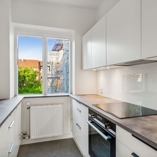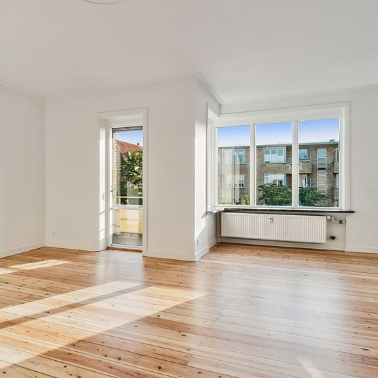 Large and spacious 2-room apartment of 79 sqm. The residence comes with all conceivable major appliances. It will be taken over newly renovated - including freshly painted walls and ceilings, sanded floors, etc. Lovely property built with yellow facade bricks with balconies, making the complex bright and inviting. The property contains 38 apartments ranging from 42-108 sqm, distributed over 1-4 rooms. The property has a bicycle cellar and 12 parking spaces, which are rented separately according to a waiting list. The property is central...