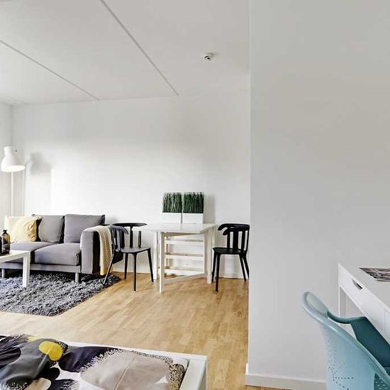 The 46 m2 apartment is located in Promenadebyen by the Odense Harbour Canal, close to the harbor bath, the station, and near the city center. The apartment has a large bright room, kitchen and living room in one, bathroom with shower, and a balcony with views of the forest and the harbor. The entire apartment is bright and friendly, contains a kitchen with white units with built-in oven, cooktop, and fridge/freezer; there is also a dishwasher, and it is well designed in connection with the living room, which has wooden floors and large brigh...