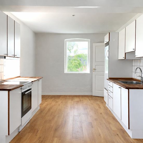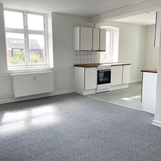 Lovely 2-room apartment in the quiet and attractive Skibhus neighborhood in Odense. The apartment includes: - Entrance - Bathroom with shower - Kitchen/living area which can advantageously be divided with a dining area by the kitchen and living room at the other end - Bedroom The residence is located on the first floor of a larger building. The rental includes its own storage room as well as access to a shared laundry basement in the neighboring building. Possibility of parking space in the shared parking lot. Pets are not allowed. NB: T...