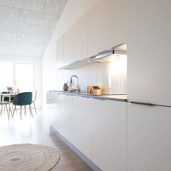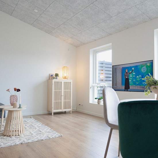 På Tusindfryd finder du dette velindrettet rækkehus på 67 m², hvor hver kvadratmeter er udnyttet optimalt. Boligen er moderne, lys og bygget i bæredygtige materialer – et hjem, der både er funktionelt og indbydende. Køkken-alrum og stue Hjemmets hjerte er det store køkken-alrum, hvor køkkenet er opført i stilrene materialer og med alt i hårde hvidevarer – også opvaskemaskine. Her er der god plads til både spisebord og en hyggelig stueafdeling. Fra alrummet er der direkte adgang til terrassen og den private have, hvor udelivet kan nydes i fr...