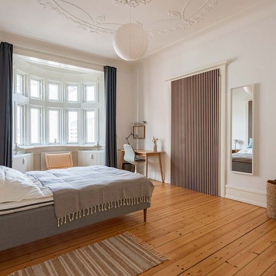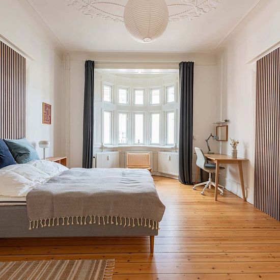 High-quality bed with bedspread, duvet and pillows. Bedside table with reading lamp. Desk with desk chair and desk lamp. Wardrobe with drawers and hanging space. Storage boxes underneath the bed. Curtains, mirror, laundry basket, trash can, rugs and decoration (not all on photos). 1) cancellation made 60 or more days before the Check-in date: For the Tenant: reimbursement of 100% of the First Instalment minus the amount of the Roomless Fees. 2) cancellation made between the 59th and 30th day before the Check-in date: For the Tenant: refund ...