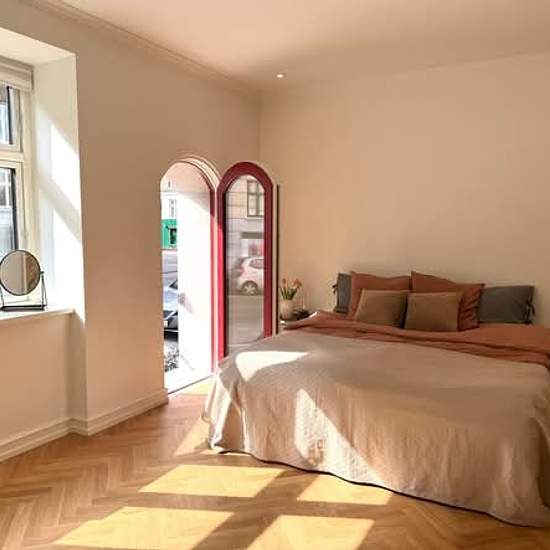 Lejligheden Kun et stenkast fra Bopa Plads og Nordhavn St. køkken-alrum, samt to badeværelser med vaskemaskine og tørretumbler. Dit værelse - Stort lyst værelse. - Ca. 21 m² med 3 meter indbyggede, nye skabe - Mulighed for at benytte møbler på billedet: 180 cm seng, lille skrivebord og natborde. - Fransk altan (plads til en stol og frisk luft) Om os Vi er Simone (23) og Mikkel (27) – et kærestepar med hver vores travle hverdag. Simone er studerende, elsker at lave mad, være kreativ og en løbetur. Mikkel arbejder fuldtid og brug...