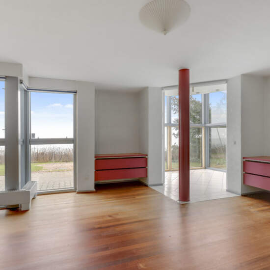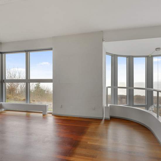 With the best location on Hjerting Strandvej, this architectural masterpiece villa is offered for sale. The villa is 275 m² + basement + garage. On the ground floor, the following features are highlighted: Entrance with wardrobe space, utility room with washing machine and dryer, bathroom with shower, open-plan kitchen/living area with the living room – as the center of the house, there is a fireplace with "sunken flue" – large living room with many good corners and high ceilings – from all rooms, there is a SEA VIEW – the architect has f...