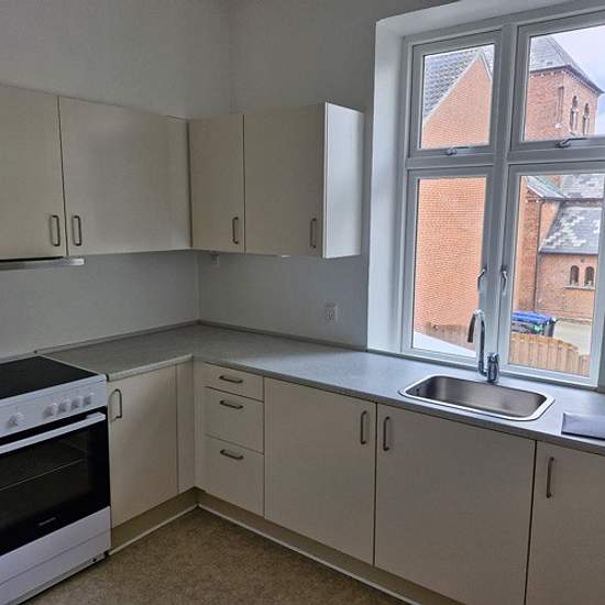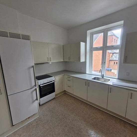 3-room 104 m2 apartment for rent in Haderslev Lovely bright, stately apartment with a nice view, located close to the pedestrian street. 3 nice rooms with wooden floors. Newer kitchen with dishwasher, washer/dryer, fridge/freezer, hob and oven, bathroom and entrance hall. Storage room in the basement. Parking possible. Haderslev: Haderslev is a charming town in Southern Jutland, known for its beautiful cathedral and historic town center with cobblestone streets. The town is idyllically located by Haderslev Fjord and offers a mix of culture, ...