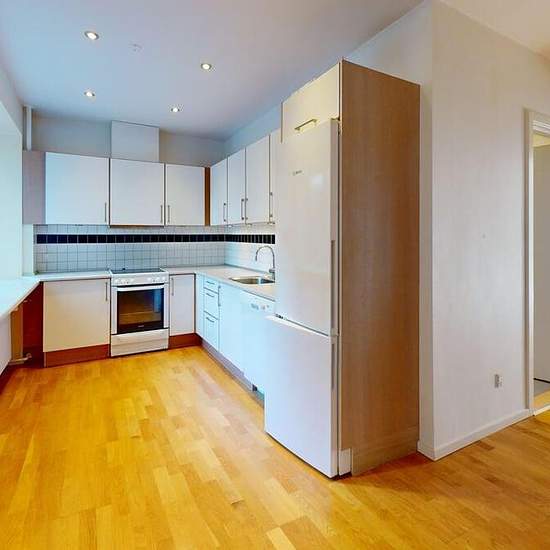 Now you have the opportunity to rent a lovely, centrally located three-room apartment in the desirable Vesterbro area of Aalborg C. The apartment offers a bright and inviting bathroom in a modern style with both a washing machine and a dryer — perfect for everyday convenience. The kitchen is spacious and also bright, with plenty of cupboard space and good functionality. One of the rooms features beautiful herringbone parquet flooring, which lends an exclusive and classic touch to the home. The building has an elevator, making daily life e...