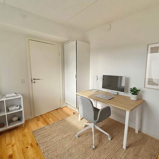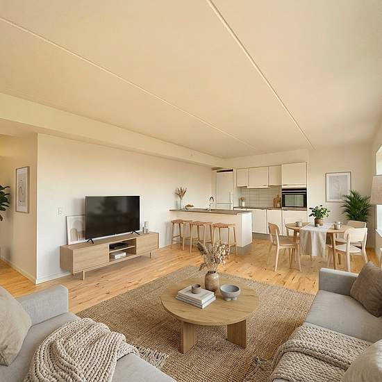 Please note that this property is rented through a housing association, which is why an "indskud" is required — and NOT a "deposit" or "prepaid rent". The indskud for this property amounts to DKK 40,609.00. Welcome to this newly built rental apartment located on Kollegievej in the heart of Aalborg! Step into this lovely 3-room apartment, where light pours in through the large windows and creates a pleasant atmosphere. Enjoy the cozy view and the fantastic natural light that invites calm and well-being. The bright kitchen includes an oven,...