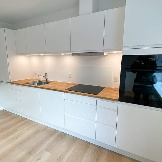 Træd ind i denne smukt gennemrenoverede lejlighed, hvor moderne komfort møder klassisk charme. Boligen fremstår lys og indbydende med flotte trælaminatgulve, spots i lofterne og en gennemtænkt planløsning. Du bydes velkommen af en lang fordelingsgang, hvor der både er en praktisk entréafdeling med skab til sko samt et rummeligt depotrum. Her er god plads til opbevaring og et naturligt flow gennem hjemmet. Til højre finder du to stuer en-suite, som elegant forbindes af dobbeltdøre. Den ene stue rummer det helt nye, stilrene køkken i hvidt m...