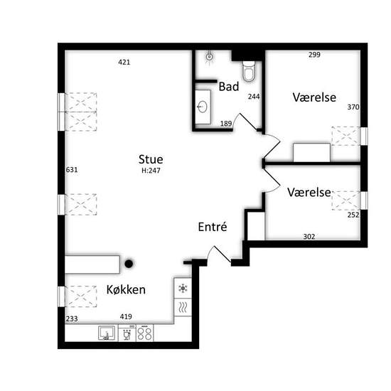 3 værelses lejlighed på 86 m² Midt i Aalborg ligger disse flotte ejendomme i Ågades Passage, som rummer 102 dejlige lejligheder fra 1993. Denne lejlighed, som er helt nyistandsat, er indrettet med en rummelig entre, og fra entre’en er der adgang direkte til køkkenet, stuen samt soveværelset og et værelse. Lejligheden er indrettet som en åben og lys lejlighed med køkkenet som et centralt rum i denne bolig. Køkkenet er indrettet så man kan benytte det til hyggeligt samvær med venner og familie, og køkkenet er indrettet med Svanes eksklusive sk...
