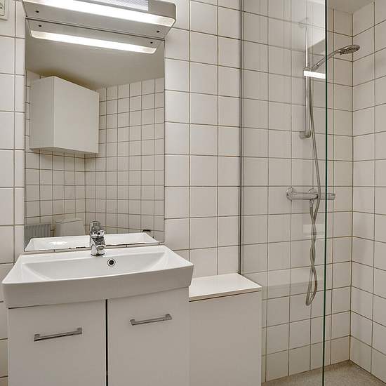 Live bright and lovely in a beautiful and well-maintained property located at Reberbansgade 12B / Dalgasgade 1, Aalborg. New windows were installed in the street-facing facade in 2012. The apartment appears newly renovated - light wooden floors, white walls, ceilings and woodwork. The building has a shared laundry room in the backyard and a bike shed in the courtyard. The property is located in the heart of Aalborg C – close to the city centre, shopping, a fitness centre, the marina and green areas. Pets are not allowed in this building.