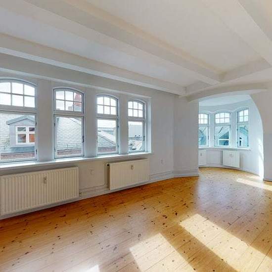Drømmer du om en skøn citylejlighed fyldt med smukke detaljer såsom bjælker karnap og meget mere? Så får du her en lejlighed lidt ud over det sædvanlige beliggende midt i byens gågade. (Den er delevenlig så du kan sagtens bo her med din ven eller veninde!). Når du træder ind ad døren til dit nye hjem bliver du som det første mødt af lejlighedens fine entré, hvorfra du kan tilgå lejlighedens badeværelse soveværelse og fordelingensgangen som leder dig videre ind i lejlighedens resterende rum. Lejlighedens badeværelse er lyst og rart med lys i...