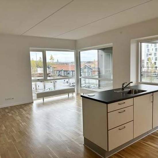 SEE HERE BRIGHT AND MODERN 3-ROOM APARTMENT WITH LARGE BALCONY AT GODSBANEN * Rent: DKK 9,300 * 91 sqm * Advance payment (utilities): DKK 900 * All major appliances included * Large balcony * Elevator * Parking available * Covered bicycle parking * Shared roof terrace Move-in date: 1 January 2026 Does this sound like something for you? Please contact us by phone: 18, SMS: 06 or by email:
