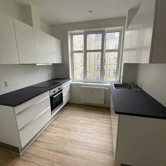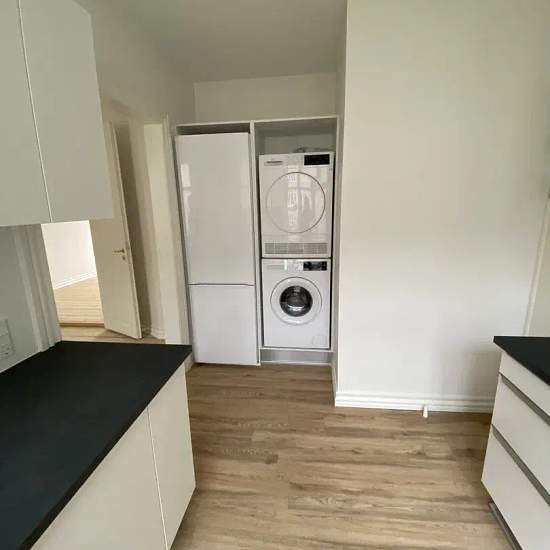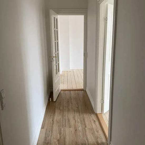 Velkommen til denne lejlighed hvor lys møder moderne kvalitet. En indflytningsklar bolig med en behagelig atmosfære. Lejligheden byder på tre værelser, der stråler af lys og rummelighed. Den fleksible planløsning gør den ideel til par, små familier eller som delelejlighed. Stuen er indbydende og let at indrette med både sofa og spiseplads, og de franske døre skaber en skøn forbindelse til et af værelserne, som kan anvendes som kontor eller ekstra soveværelse. Det lyse soveværelse har indbyggede skydelågeskabe, der sørger for god opbevarings...