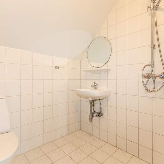 Welcome to a move-in ready three-room apartment of 81 m2 that combines light materials, classic details and a functional layout. The apartment features freshly painted white walls and beautiful, continuous plank floors in the living areas and bedrooms, creating a warm and inviting atmosphere. The gently sloping walls and dormer/divided-pane windows add extra charm and pleasant natural light. The kitchen is separate and practically arranged with plenty of counter space, white cabinetry, a white tiled wall and dark floor tiles. It includes an...