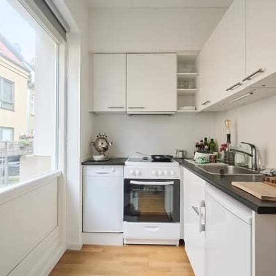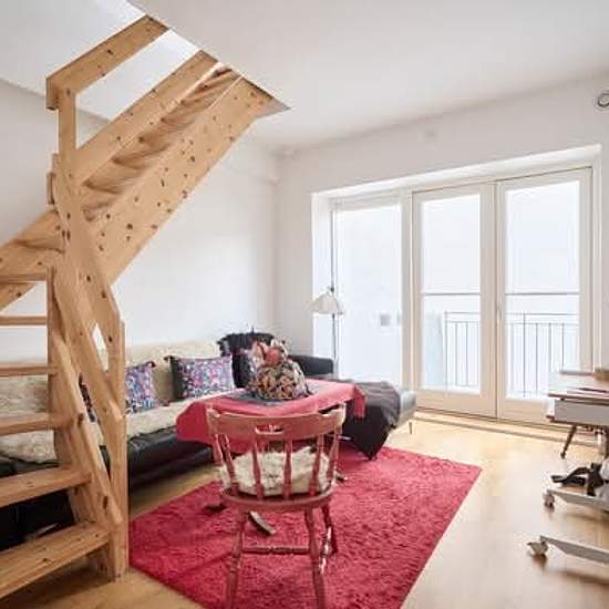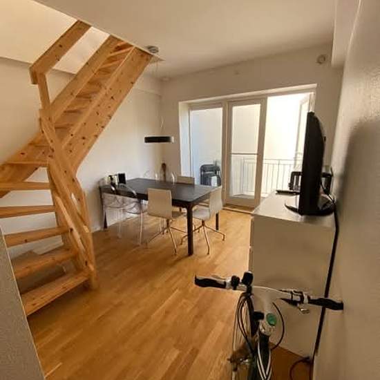 3-room apartment with balcony in Aalborg city center Beautifully renovated 3-room apartment over 2 floors in a quiet setting. On the ground floor you are greeted by an open-plan kitchen/dining area that appears bright due to the large window section. A dishwasher is installed in the kitchen. There is also access to the balcony, which overlooks a cozy courtyard. Next to the stairs is the bathroom, which has a separate shower cubicle and where a washing machine has been installed, with the possibility to install a tumble dryer. Upstairs yo...