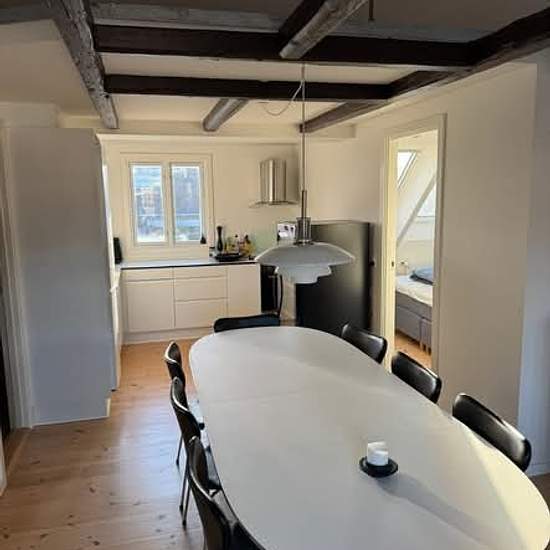 Lovely 2-room apartment with a mezzanine that provides extra square metres. - In the heart of Aalborg city centre, close to everything - 2 rooms plus mezzanine, total 70 sqm - Completely renovated modern building - Pets allowed - Cozy locked courtyard - Quiet entrance with friendly neighbors - Rent DKK 6,700, 3 months' deposit, advance payment DKK 650 Contact me by SMS: Tanja