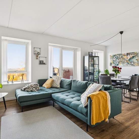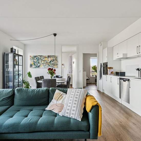 Here is the opportunity to acquire a super nice apartment in Aalborg with a fantastic view over the city. This share-friendly 3-room apartment of 93 sqm is perfect for students, couples or small families. The apartment is equipped with a modern Svanekøkken kitchen that appears new and stylish. All rooms feature modern design with underfloor heating and low-maintenance flooring, ensuring a comfortable and practical home. From the living room you have access to a balcony where you can enjoy the midday and afternoon sun. The balcony is the id...