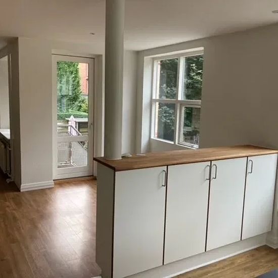 Velkommen til denne 3-værelses lejlighed hvor lys og kvalitet møder et roligt bymiljø. En indflytningsklar bolig med en behagelig atmosfære. Lejligheden præsenterer en funktionel og delevenlig planløsning med et stort opholdsrum, der fungerer som det naturlige samlingspunkt. De store vinduer sikrer et behageligt lysindfald, og den åbne forbindelse mellem stue og køkken giver plads til både spiseplads og sofamiljø. Det nye køkken er praktisk indrettet med god skabs- og bordplads samt alle nødvendige hårde hvidevarer, herunder køle/fryseskab,...