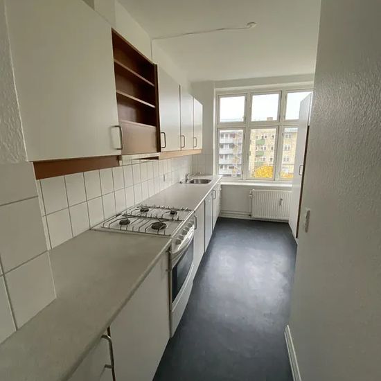 Velkommen til denne lejlighed hvor lys møder klassisk bystemning. En indflytningsklar bolig med en behagelig atmosfære. Lejligheden byder på 80 m2 fordelt på tre gode rum, der alle prydes af afhøvlede og oliebehandlede plankegulve, hvidmalede vægge og behagelige loftshøjder. Entréen, der har linoleumsbelægning, fungerer som en praktisk fordelingsgang til boligens øvrige rum. Opholdsrummene er lyse og indbydende med store vinduespartier og originale fyldningsdøre. Her er god plads til både spise- og sofazone, og det fleksible rum kan tilpass...