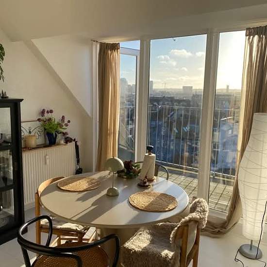 **Fremleje af skøn 3-værelses lejlighed** Jeg fremlejer min dejlige lejlighed, da jeg skal ud at rejse i perioden **1. februar – 13. marts**. Datoerne er mere eller mindre fleksible. Lejligheden er 64 kvm (5 kvm hems). Lejligheden ligger på **Høegh-Guldbergsgade**, lige over for Aarhus Universitet og kun 5 minutters gang fra Nørre Allé. **Om lejligheden:** * Fantastisk udsigt – måske en af Aarhus’ bedste * To værelser (ca. 14 kvm hver) * Køkken med spiseplads samt en stor hems * Fremlejes delvist møbleret * Vaskemaskine, tørretumbler ...
