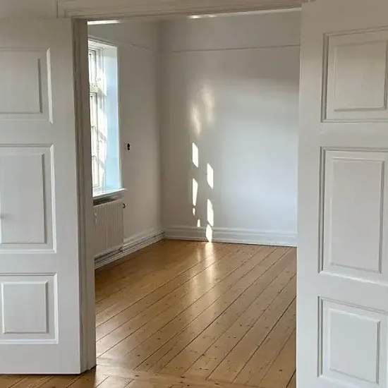 Welcome to this lovely and spacious 3-room apartment, located in the attractive Frederiksbjerg area – close to both forest and beach and the cozy market on Ingerslevs Boulevard, just a stone’s throw from Harald Jensens Plads. The apartment exudes classic charm with its high decorative plaster ceilings and original plank floors. You get a pleasant kitchen, equipped with all appliances and room for a small table. There is a new bathroom with a washer-dryer combo – perfect for modern living. The central entrance hall provides access to the tw...