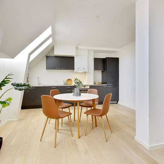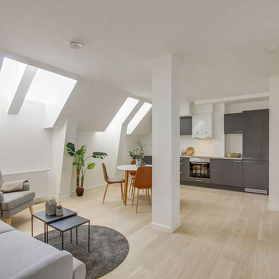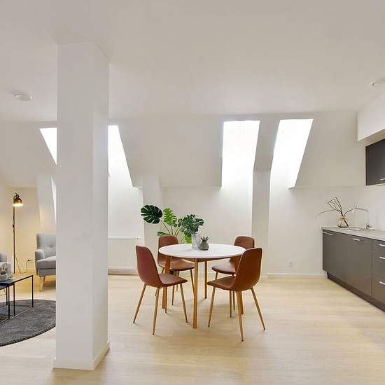 On Peter Sabroes Gade in Aarhus C we rent 2-, 3-, 4- and 5-room apartments in the beautiful and historic building that formerly housed Chr. IX’s children's home and the Peter Sabroe Seminary. The apartments have been renovated with respect for the property, including large multi-pane windows that preserve the classic expression. All units have their own balcony or terrace area. Appliances All rentals include a refrigerator, freezer and dishwasher. There is a washing machine and tumble dryer in the building's basement. Pets Tenants may app...