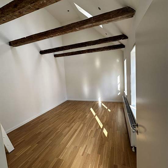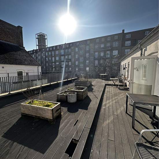 Apartment suitable for sharing with a communal roof terrace in Aarhus C Very attractive apartment on Ryesgade in the heart of Aarhus C with access to a large, communal roof terrace. The apartment features beautiful, exposed beams and a layout that makes it perfect as a shared flat. A charming home offering both city life and tranquility.