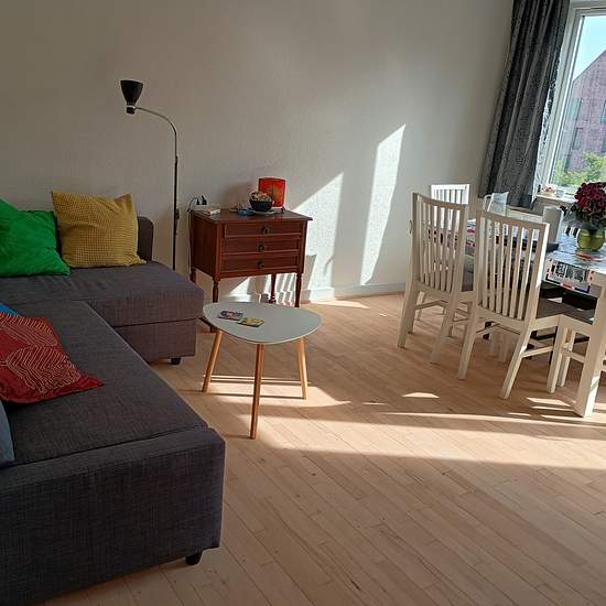 Lovely and spacious apartment close to the university Charming apartment with a large living room with plenty of natural light as well as two good bedrooms. The kitchen is equipped with a fridge/freezer, stove, extractor hood and dishwasher. The bathroom looks nice and is fitted with a shower enclosure. The apartment is suitable for sharing, as all rooms are connected via a spacious entrance/hallway. In the basement there is a communal laundry room, space for bicycles and storage options. In addition, there is a cozy courtyard for communal ...