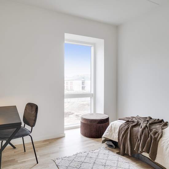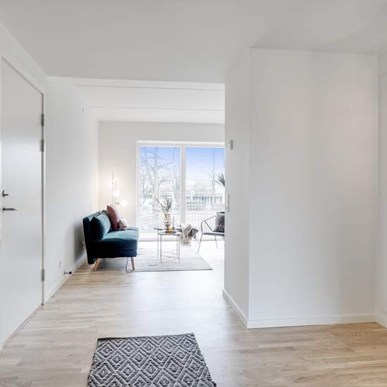 Lovely bright three-room apartment located in this beautiful block set down toward Rådhussøen, giving residents an exceptional view of the lake and fantastic light from the afternoon and evening sun. In Rådhus Have you get a modern rental apartment that is ready to move into. The building consists of 2-, 3- and 4-room apartments of 55–108 m2 with light oak floors, attractive HTH kitchens, spacious rooms and lovely large windows. The communal courtyard features an interesting and varied green design, alternating between beds, trees, play ar...