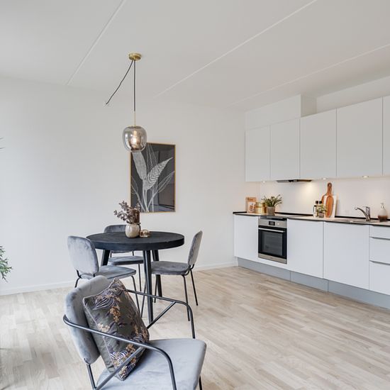 Beautiful bright penthouse apartment located in this lovely block sunken towards Rådhussøen, giving residents a unique view of the lake and fantastic natural light from the afternoon and evening sun. In Rådhus Have, you get a modern rental apartment ready to move into. The property consists of 2-, 3-, and 4-room apartments ranging from 55-108 m2 with bright oak floors, beautiful HTH kitchens, spacious rooms, and lovely large windows. The communal courtyard offers an exciting and varied green expression, alternating between flowerbeds, tree...