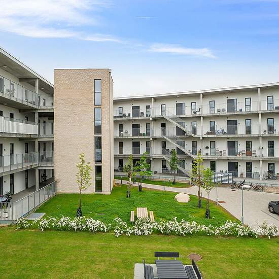 On Prins Valdemars Allé in Lillerød we rent 2- to 4-room apartments designed by TNT Arkitekter A/S. Enjoy spaciousness and natural light in all the apartments. The units on the third floor have private balconies, and the others can use the shared gallery as an outdoor living area. You get a storage room in the basement. Appliances You get all major appliances. Pets Tenants can apply for permission to keep one indoor cat. See our full pet rules here. Parking It is possible to rent a parking space in the parking basement. Common areas Enjo...