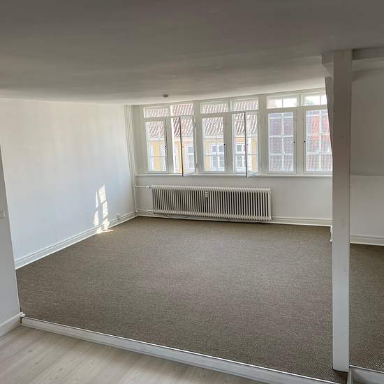 Sjælden lejlighed til leje i centrum af Assens. Lejligheden har en fantastisk udsigt ned igennem Østergade og udsigt til havn og Assens bugt. Lejligheden ligger i en velordnet og rolig ejendom og adgang til gårdmiljø. Lejligheden indeholder entre, Stor åben stue/køkken med adgang til 2 separate værelser. Badeværelset indeholder bruseniche, vaskemaskine/tumbler og vaskeskab. Hund er ikke tilladt. Lejemålet opvarmes med billig fjernvarme fra Assens Fjernvarmeforsyning. I huslejen er inkl. renovation og vand. Til ejendommen hører lukket gårdm...