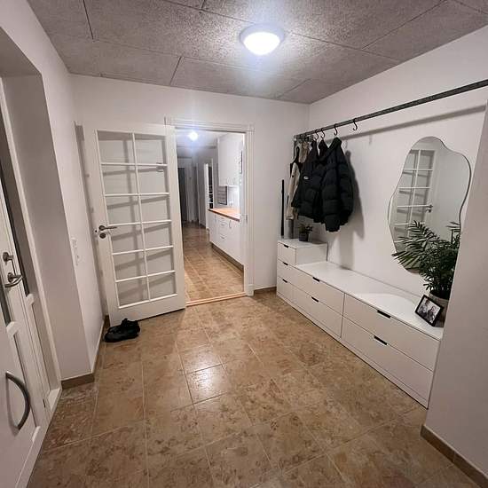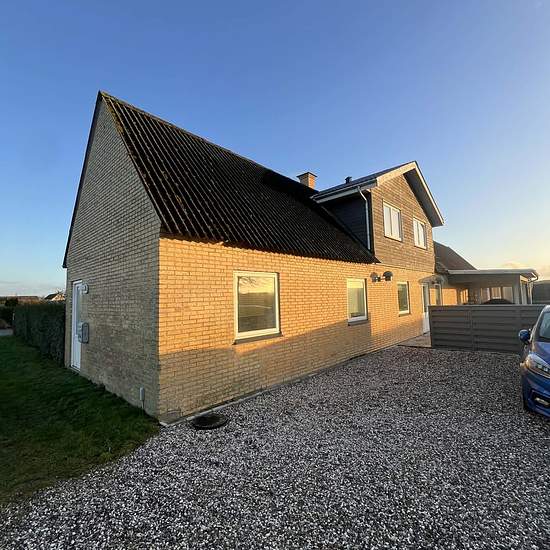 Lovely newly renovated apartment in rural surroundings just 2.5 km from the Bogense town boundary and close to the beach and forest. There is a lovely large terrace with a covered area and an insulated shed of about 6.5 m2, a fenced garden with lawn and paving between the covered area and the shed, and it gets sun from midday until it sets. The apartment itself contains one room on the ground floor and one on the first floor, a utility room with the possibility to connect your own washing machine and dryer, a kitchen with lots of storage s...
